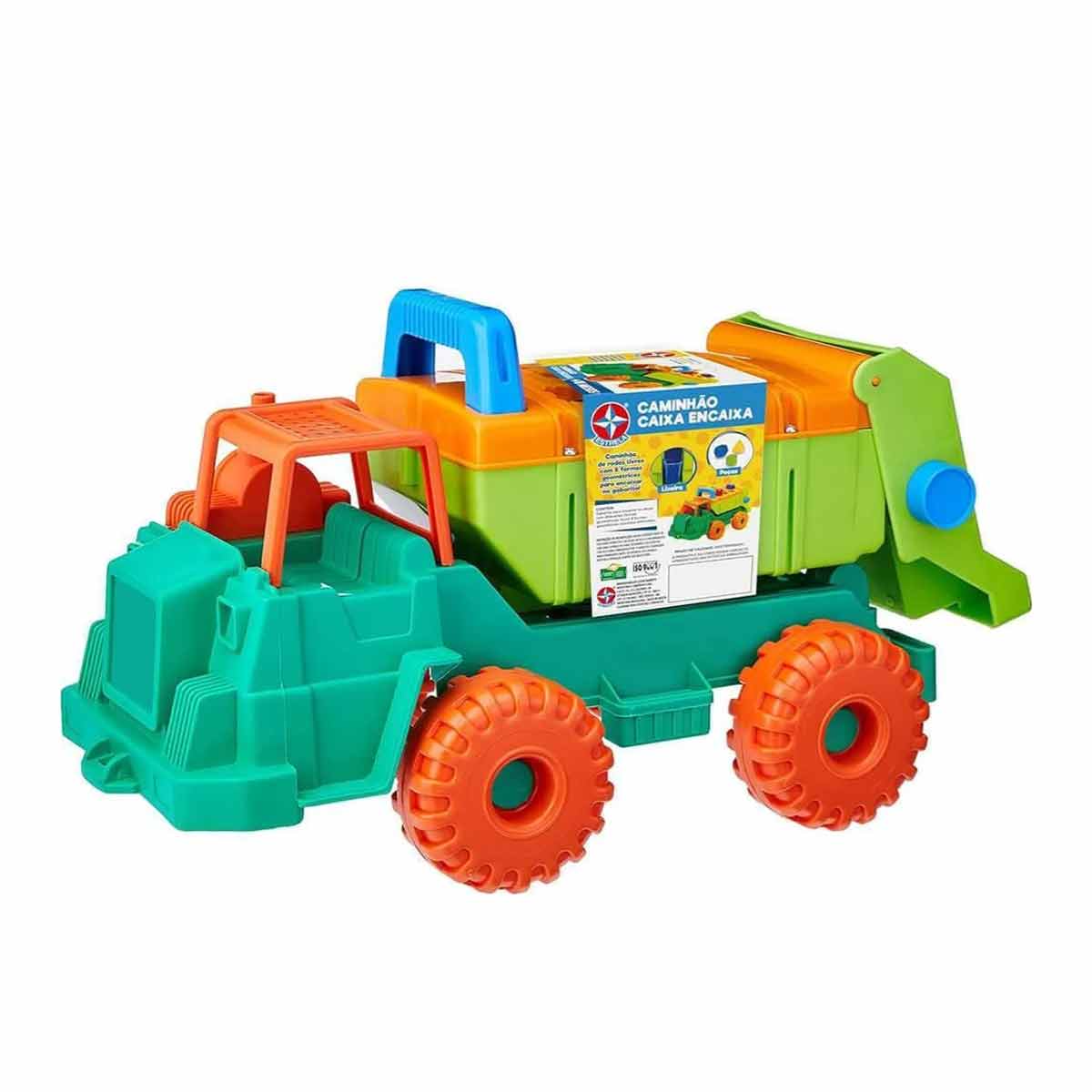 Nova versão do clássico Caixa Encaixa, agora em formato de caminhão. O Caminhão Caixa Encaixa oferece múltiplas possibilidades de brincadeira, unindo a temática do caminhão de lixo ao divertido desafio de encaixar formas.
